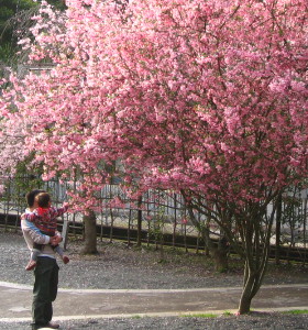 父の眼鏡に 海棠の花。