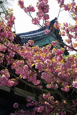 八重桜満開の本覚寺