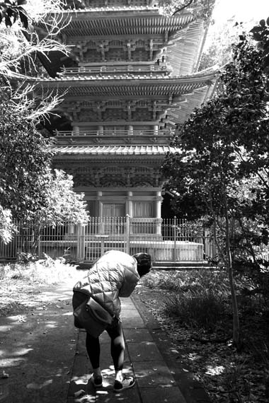 江ノ島の龍口寺、今まであまり来たことが無かったんです。門前に桜が咲いていました。この日は袈裟を着た人たちが団体で来ていました。なにかの会合でもあったのでしょうか?