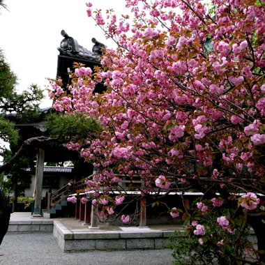 八重桜はそのボリュームは圧巻ですね。家にも八重桜が咲いているのでいつも見ているんですが、お寺をバックに咲いているとまた違って見えるものです。