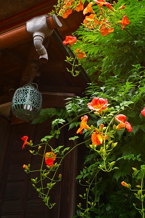 この海蔵寺のはオレンジ色の中国原産の伝統的なノウゼンカズラです。このオレンジ色は夏の日差しにピッタリです。