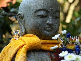 開山堂前の花想い地蔵さん、マフラーがお似合いです