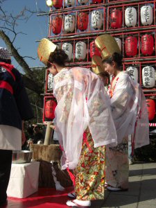 毎年この日は、えびす様をお祀りしている本覚寺で、祈祷会と福餅つきが行われます。