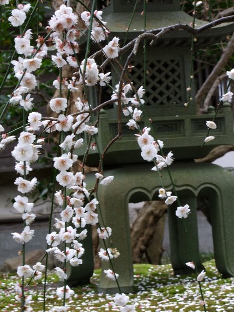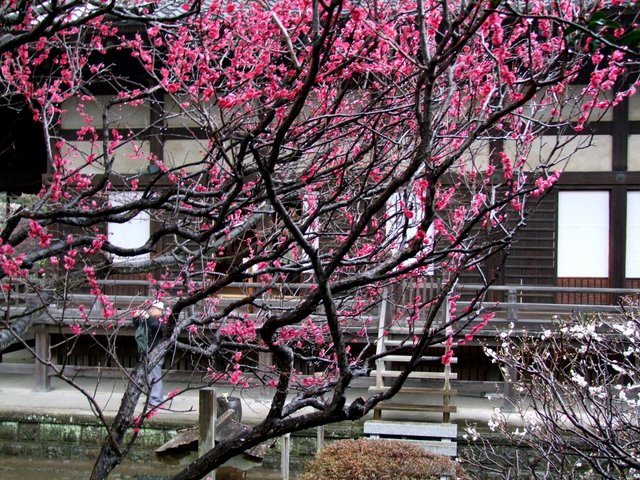 宝戒寺 枝垂れ白梅 紅梅とも 見頃です
