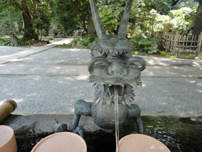 手水舎の龍。暑い日差しの中で一服の清涼感を与えてくれます。
