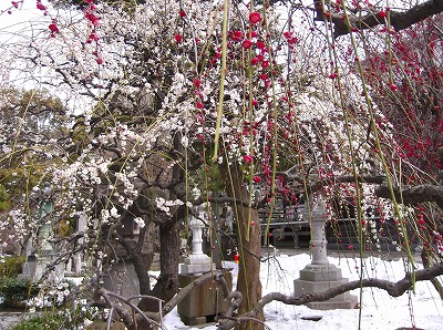 今日のお目当ては、枝垂れ梅が咲く常立寺です。