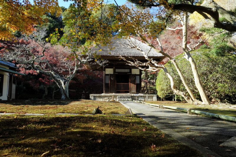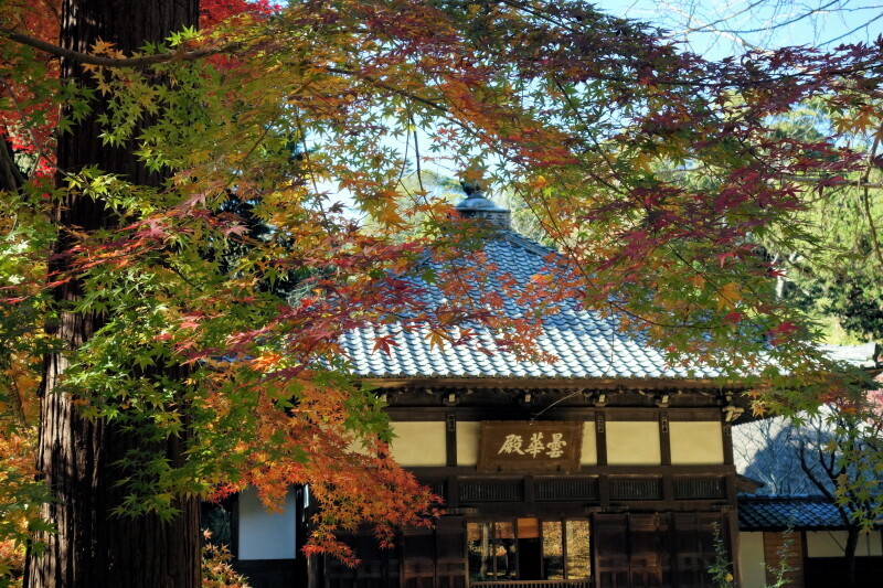 ◆本堂/雲華殿の前の紅葉、青葉残る