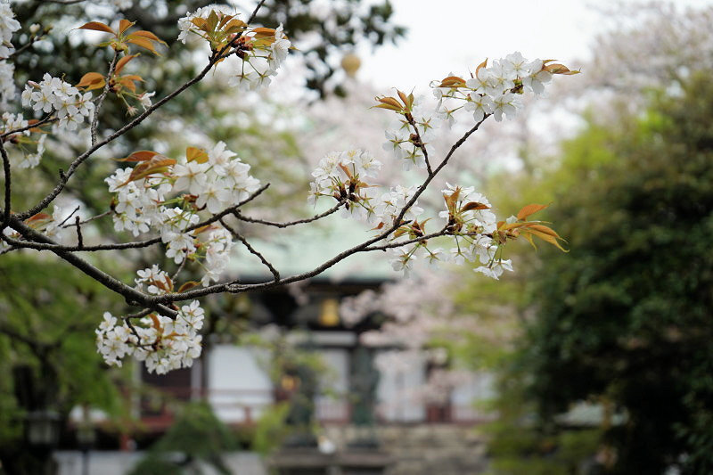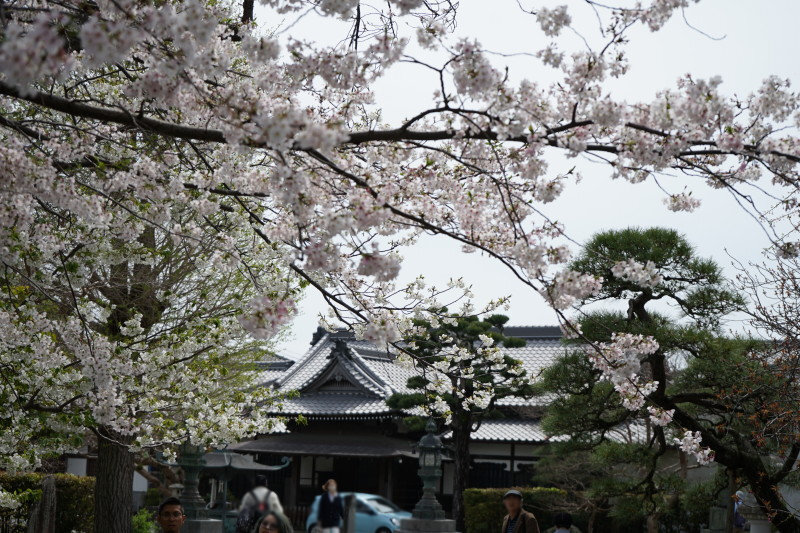 ◆ヤマザクラ技越しの本堂、材木座/長勝寺
