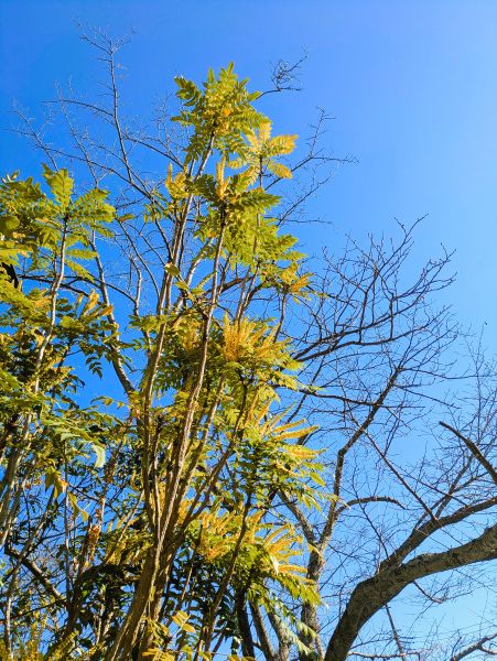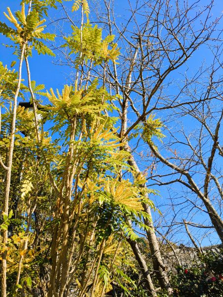 青い空に黄色い花が美しい、まだちょっと早いのかな