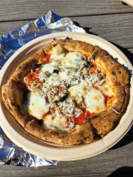 お庭にキッチンカーが数台来ていて御縁日です。シラスのピザを食べましたよ。今日は観音経を買いました前回怖い思いをしたのでいつも持っていようと?