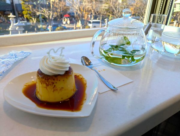 今日は明王院でお不動様の御縁日に参加すること(お堂に上がりお経を唱える)と鎌足稲荷神社へお参りするのが目的なので他には寄らず駅方面に戻り置石さんで干菓子を買い、上のカフェへ、娘はハーブティーとプリンを