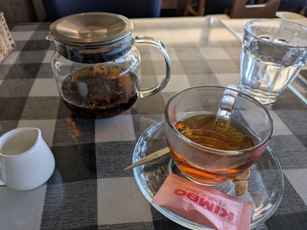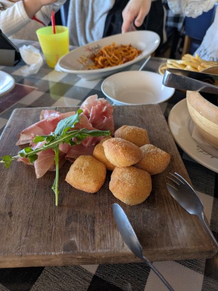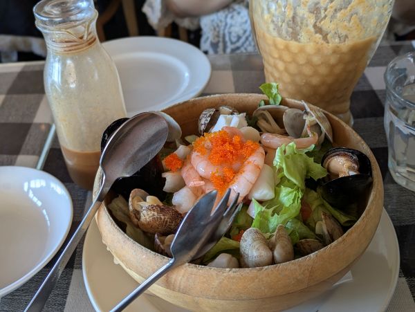 待ってる間にアールグレイティをすごく香りがよかった(*^^*)ここへ来たらこのサラダ、生ハム、子供メニューも