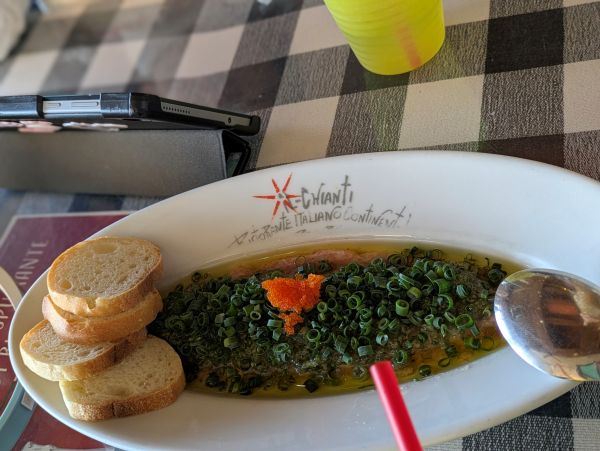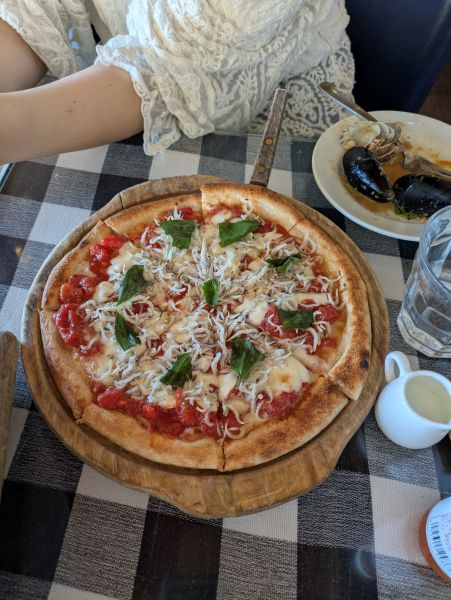 マグロのナントカとシラスのピザ、このほかにイカと海苔のスパゲッティ小さい子が二人なので大変、この後、新江の島水族館へ。急がねば