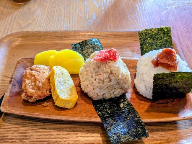 さてランチはどうする?大仏さんのところからバスに乗り六地蔵で降りる、御成り通りで何かと思ったけど、おにぎり屋さんの前を通った時お腹減ったね~ここで食べちゃう?頂きました!!ご飯が白米、玄米と選べます、具もいろいろあり選ぶのが迷った美味しかったあ味噌汁もありましたけど暑い日だったので付けませんでした。二階席でゆっくりと頂きました。紅谷さんでくるみっこの切り落とし抽選で買えることになっていたので(先週も当たっていたのよ)買いに