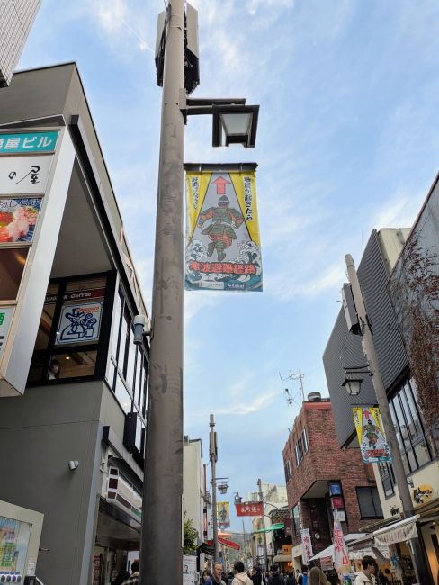 小町通りのフラグ、津波が来たら逃げよう案内になっている、このへんだと八幡様の階段の上かな?豊島屋さんの御菓印青葉ですね今日はこれでお終い!先週娘と来たときはまだ段葛の桜が美しかった、これは先週の段葛です